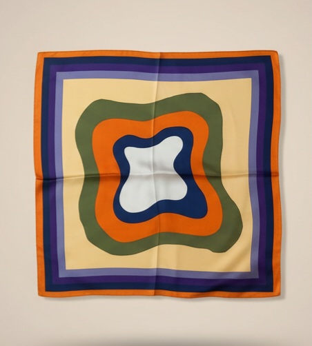 Con un formato cuadrado de 72 x 72 cm, este pañuelo ofrece gran versatilidad para llevarlo al cuello, en el bolso, en la muñeca o incluso como accesorio para el cabello. Su diseño dinámico y lleno de color lo convierte en una pieza ideal para elevar tanto conjuntos casuales como outfits más sofisticados.