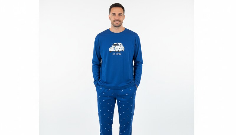 El pijama de hombre de la marca DARK ELEPHANT en color azul es una opción cómoda y moderna para descansar con estilo durante las noches de entretiempo. La camiseta de manga larga presenta un original dibujo de coche en el pecho acompañado de la frase “soy leyenda”, aportando un toque divertido y desenfadado.