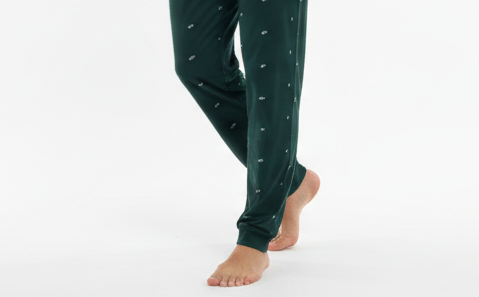 Está confeccionado con un tejido suave y flexible compuesto por 50% algodón, 45% poliéster y 5% elastano, lo que proporciona transpirabilidad, resistencia y libertad de movimiento. Ideal para quienes buscan un pijama cómodo, actual y perfecto para las noches de entretiempo.