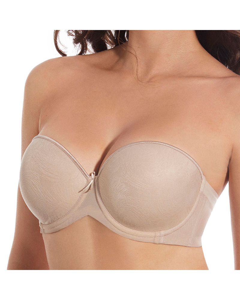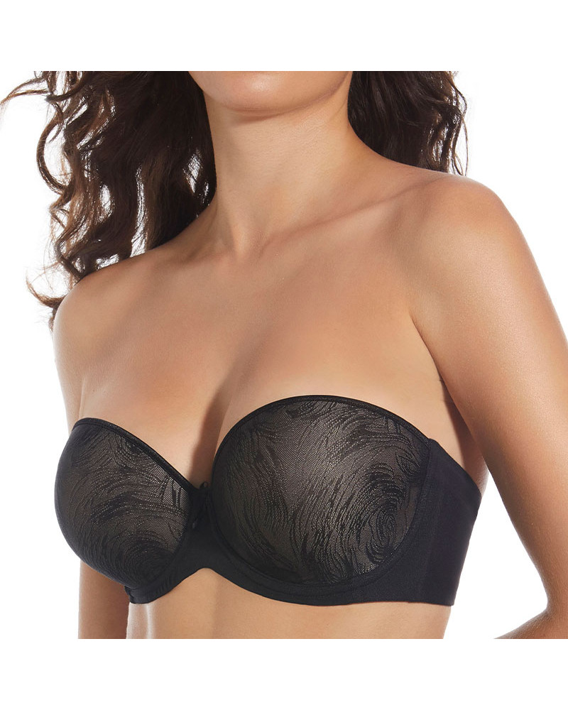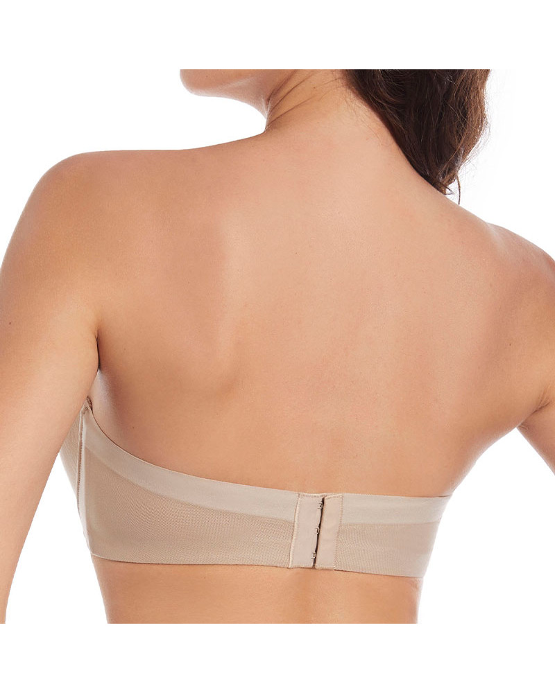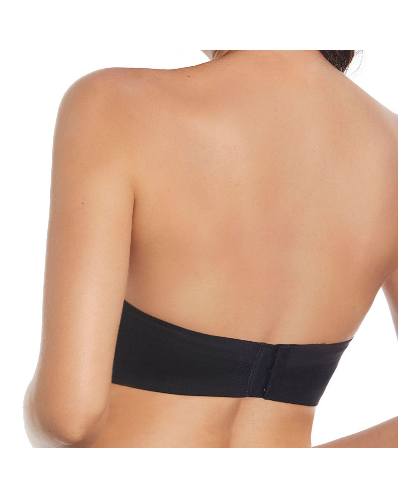 Su diseño incorpora un elegante cruce de tules con corte láser, que ayuda a cubrir y minimizar irregularidades en los costados y axilas, creando un efecto alisador y una silueta más estilizada bajo cualquier prenda ajustada. La combinación de tules y corte láser ofrece una cobertura óptima y un acabado impecable, ideal para vestidos strapless o tops escotados.